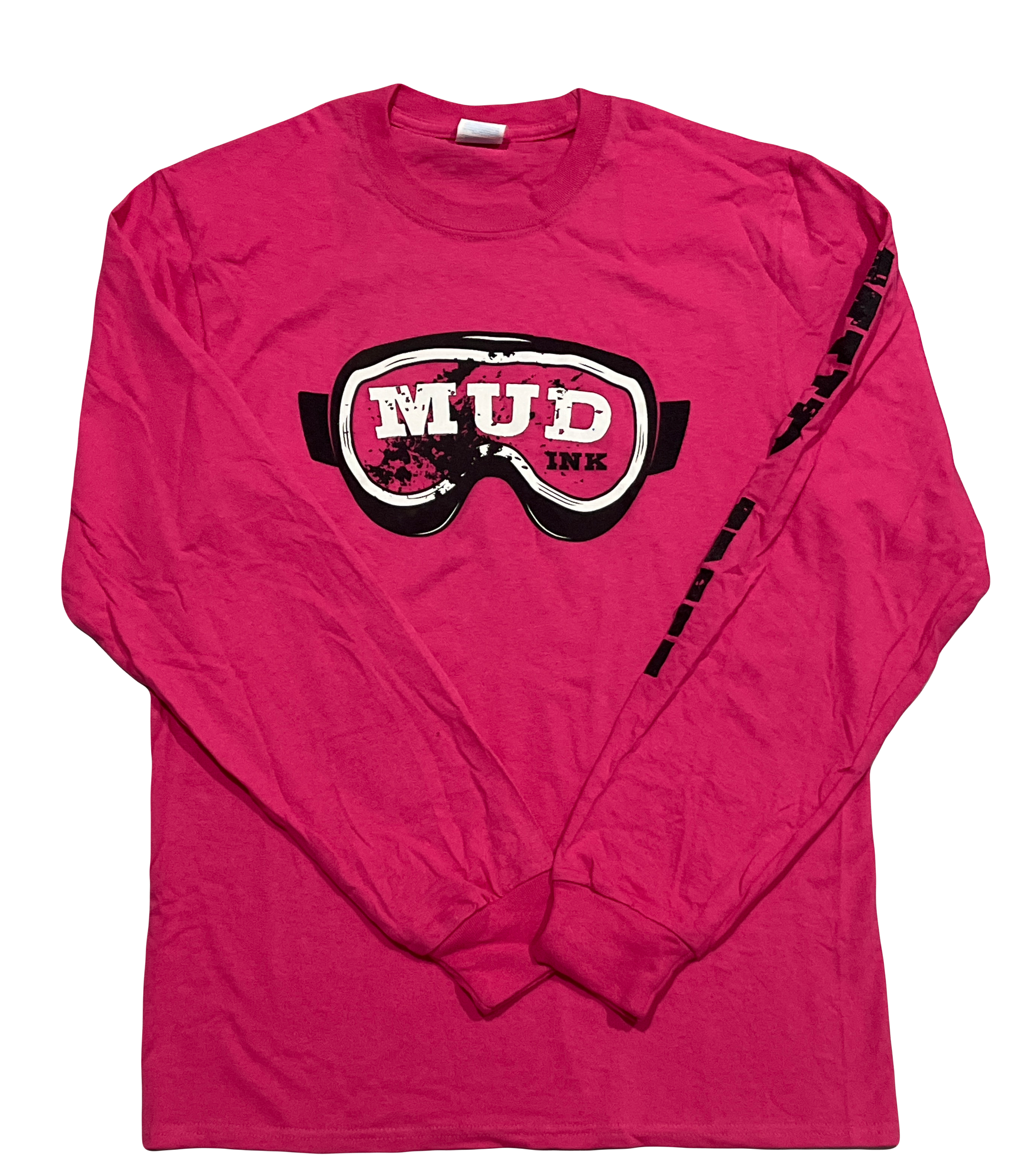 Soft longsleeve topwear repping Mud Ink with a moderately sized goggles design on the front, and the words "MUD INK" on the left sleeve. Fulfill all your 4-wheeling needs and Mud Race like a master with merch from Mud Ink.